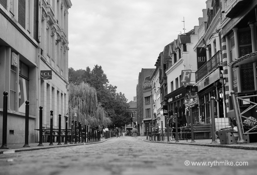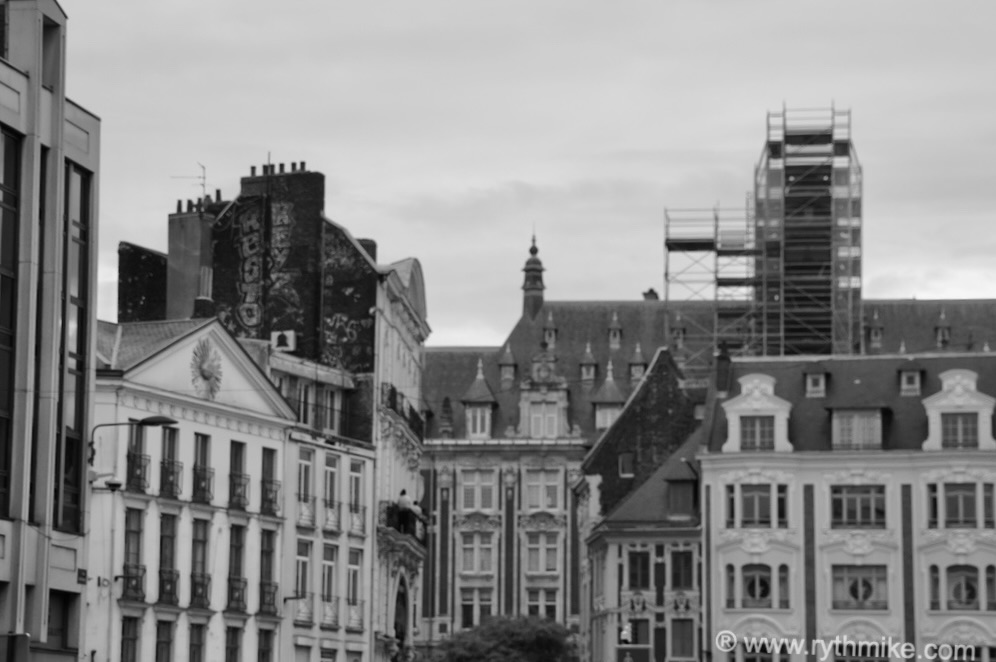 Photographies prisent à Lille en 2022. Avec un temps couvert en automne, dans le centre ville. Photos en Noir et Blanc. Dessus la rue nationnal, la grand place, la rue de pas. Un éxtrait d'un poème qui raconte bien, comment se vie le début de l'automne :